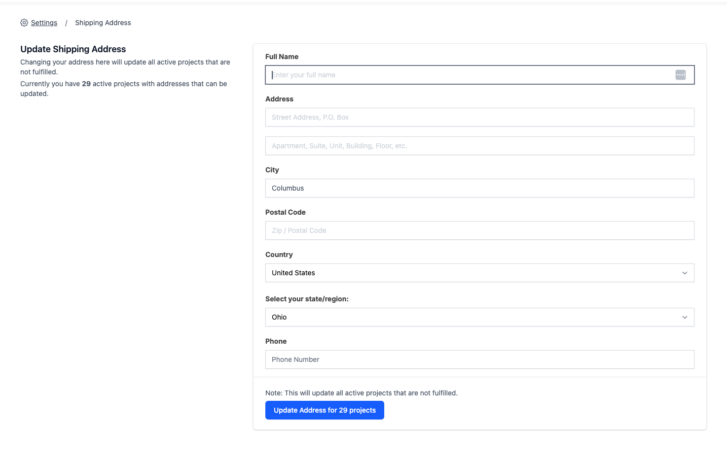 General Fulfillment FAQ & How Do I Update My Shipping Address?