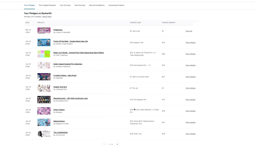2. Go to the campaign page via the search bar at the top of the BackerKit Crowdfunding homepage or if you've pledged, from "Your Pledges and Surveys".