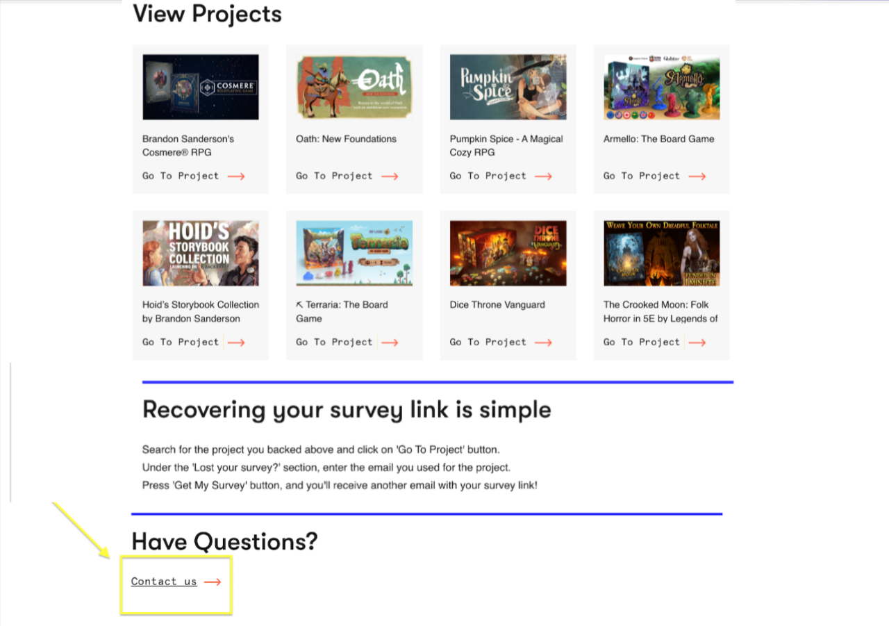 If you have a survey you can’t access yet, can't log in, or just have a general non-project specific question about BackerKit, you can still reach us.
