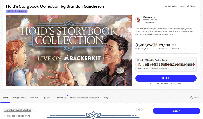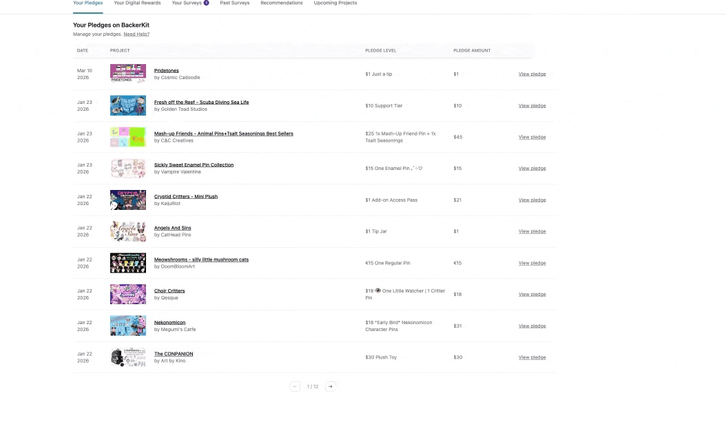 - Go to the BackerKit campaign page by using the search bar either at the top of the BackerKit homepage or through your pledges.