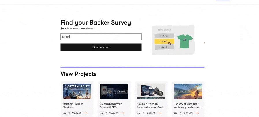 - Go to the Find your Backer Survey page and search for your project → Go to Project