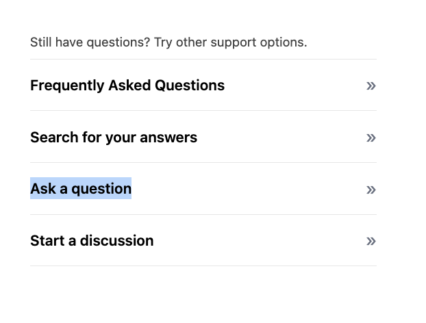 - After this, the FAQ page will have specific information about your project. If you don't find an answer to your question, you can use the contact form that is available for that project. You'll see the text box below, where you will be prompted to select the statement that matches closest to your question. If your question is still not answered, please click "Still have questions?" to type in your own response.