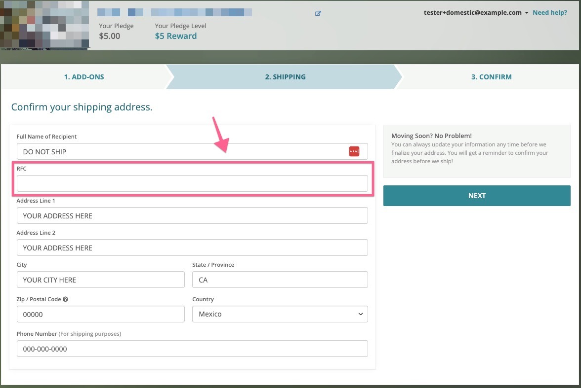 - If your fulfillment partner requires this information for specific countries, mention it early in your updates to avoid confusion, and also as an FAQ and an informative pledge question.
