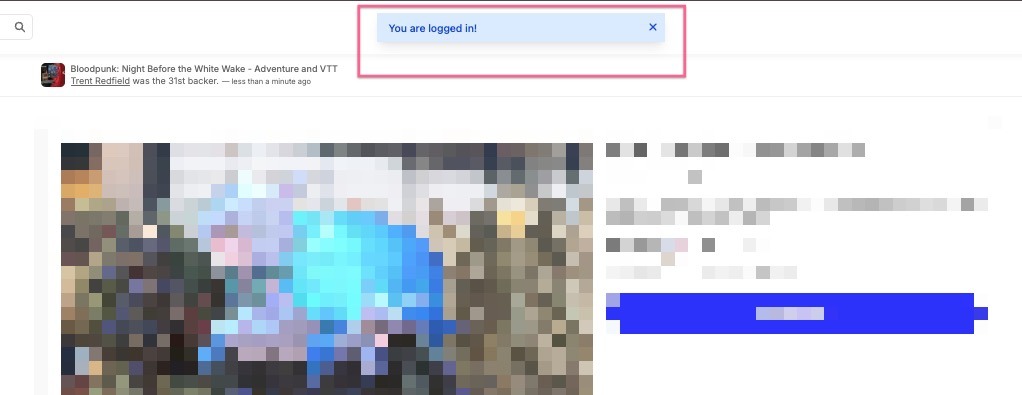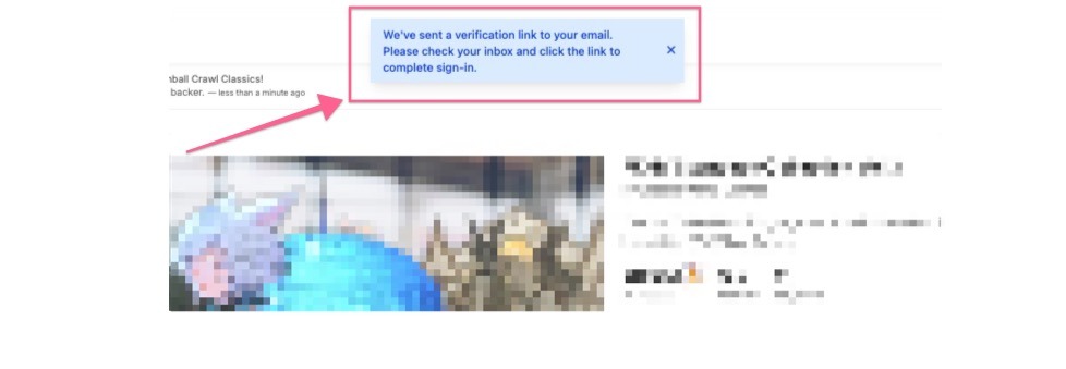 - After attempting to log in, you will be pushed back to “backerkit.com” (the homepage) letting you know that a verification email has been sent.