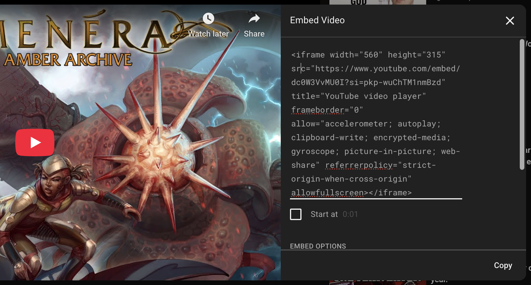 Copy the code that appears under Embed Video