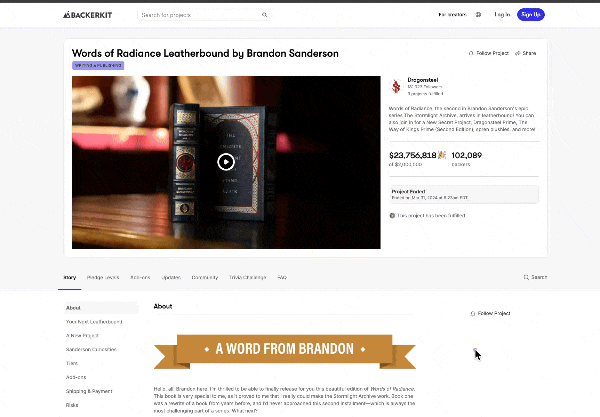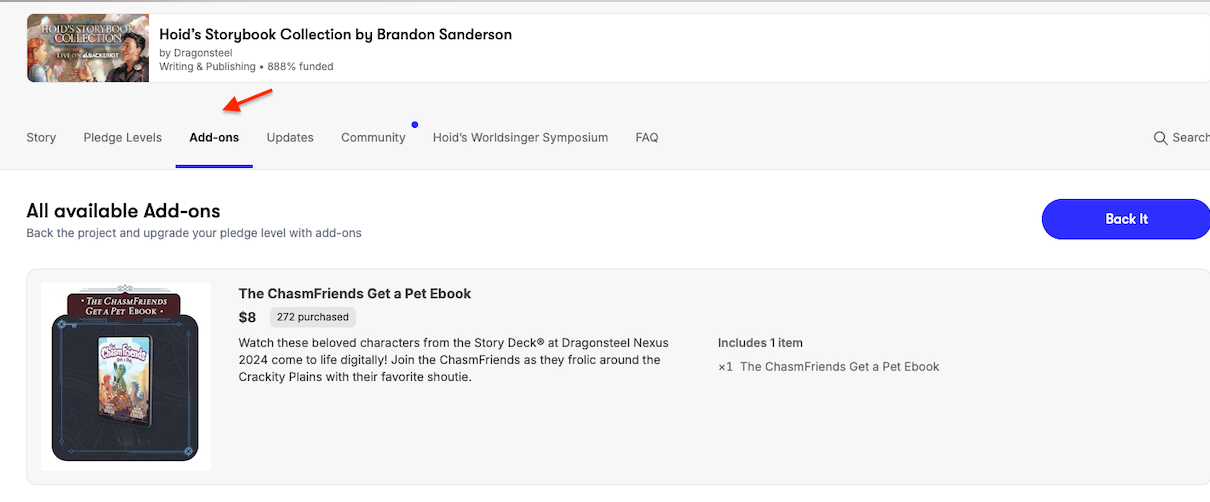 | An example of where to locate BackerKit Crowdfunding, Kickstarter, and Preorder Project Updates |